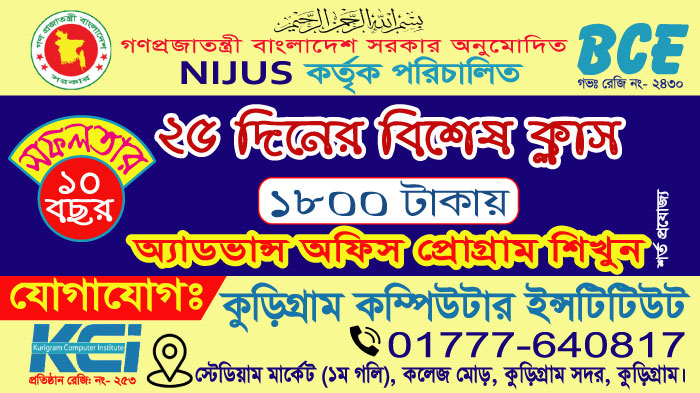 ২৫ দিনের বিশেষ ক্লাসে কম্পিউটার ভর্তি চলছে